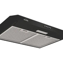 конструкция плоская • монтаж настенный • ширина 59.5 см • управление механическое/кнопочное • производительность мотора 400 м³/ч • цвет черный