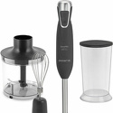 Тип: погружной (ручной) блендер • Мощность: 1300 Вт • Скорости: 2 шт, импульсный • Насадки: ножка, венчики, нож для измельчителя