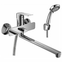 Комплектация - Держатель душевой лейки, душевой шланг, ручной душ, Материал корпуса - Латунь, Термостат - Нет, Назначение - Для ванны и душа, Покрытие - Хром, Тип - Однозахватный, Присоединительный размер - 1\2", Коллекция - RS, Тип подводки - Жесткая, Количество монтажных отверстий - 2, S-образные эксцентрики - Есть, Форма излива - Традиционная, Поворотный излив - Да, Донный клапан - Нет, Аэратор - Есть, Цвет - Серебристый, Высота - 16.8, Длина излива - 370, Ширина - 19.4